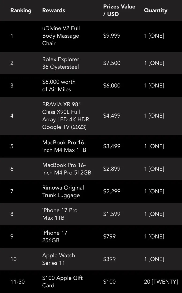 • e. The updated ranking leaderboard will be published on the promotion landing page every Wednesday, starting from 10 December 2025.